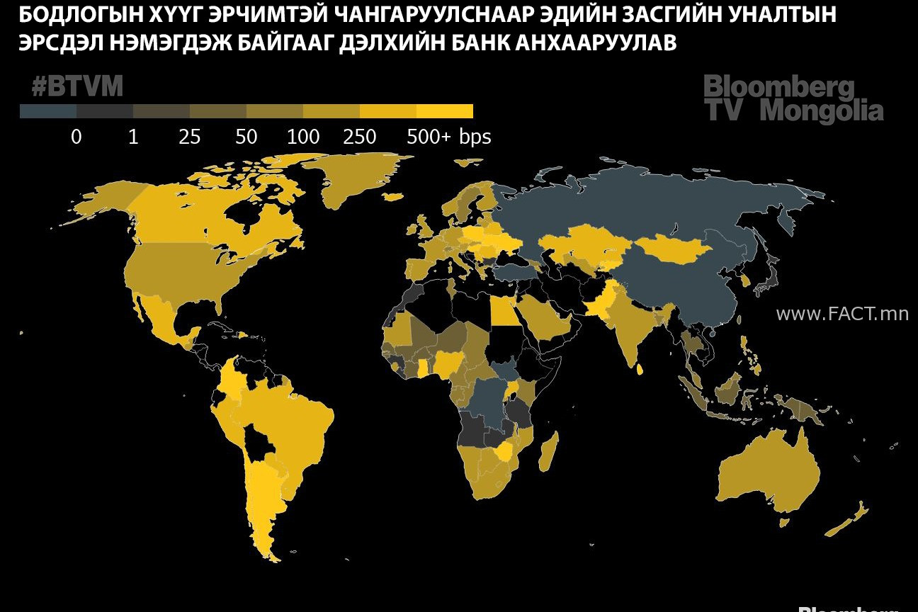 Ирэх он гэхэд Төв банкнууд суурь инфляцыг таван хувийн түвшинд барихын тулд бодлогын хүүг бараг дөрвөн хувь болгож нэмэгдүүлнэ гэсэн хүлээлт хөрөнгө оруулагчдын дунд давамгай байгаа бөгөөд энэ нь 2021 оны дундаж түвшнээс хоёр дахин өндөр дүн болж байгаа юм.