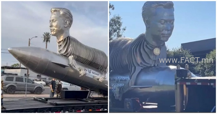 Нийт 9 метр урттай, 600 мянган ам долларын үнэтэй хөшөөг Элон Маскын фэнүүд бариулжээ.