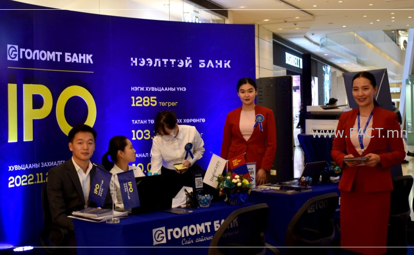 Голомт банк 2022 оны 11-р сарын 16-нд буюу өчигдөр хувьцааны танилцуулгаа албан ёсоор эхлүүлж, IPO нээлтээ хийсэн.