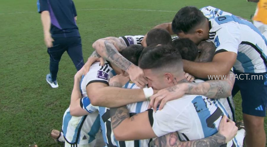 Улаанбаатар /МОНЦАМЭ/. “Катар-2022” ДАШТ-ий “Lusail” цэнгэлдэхэд өчигдөр шөнө /2022.12.18/ Дэлхийн хошой аваргууд болох Аргентин болон Францын шигшээ багуудын хооронд аваргын алтан медалийн төлөөх ширүүн тулаан өрнөж, тэд тоглолтын цагтаа 3:3-аар тэнцэж, 11 метрийн торгуулийн цохилт /пенальт/-оор ялагчийг тодруулахад 4:2-оор Аргентины шигшээ баг хожиж “Алтан дагина” цомын эзэн боллоо.
