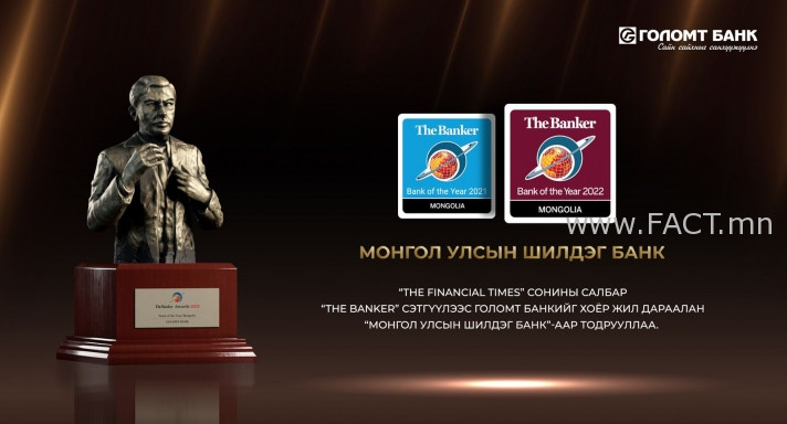 Голомт банк 2022 оны “Монгол Улсын Шилдэг Банк”-аар тодорлоо