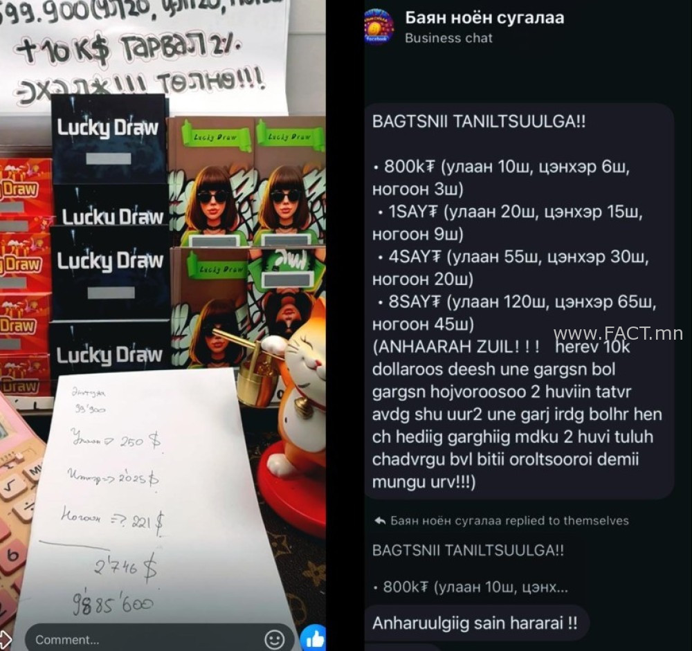 “Сугалаа аваад хусаад хож” гэх шууд дамжуулалтад орж, 30.4 сая төгрөгөөр хохирчээ