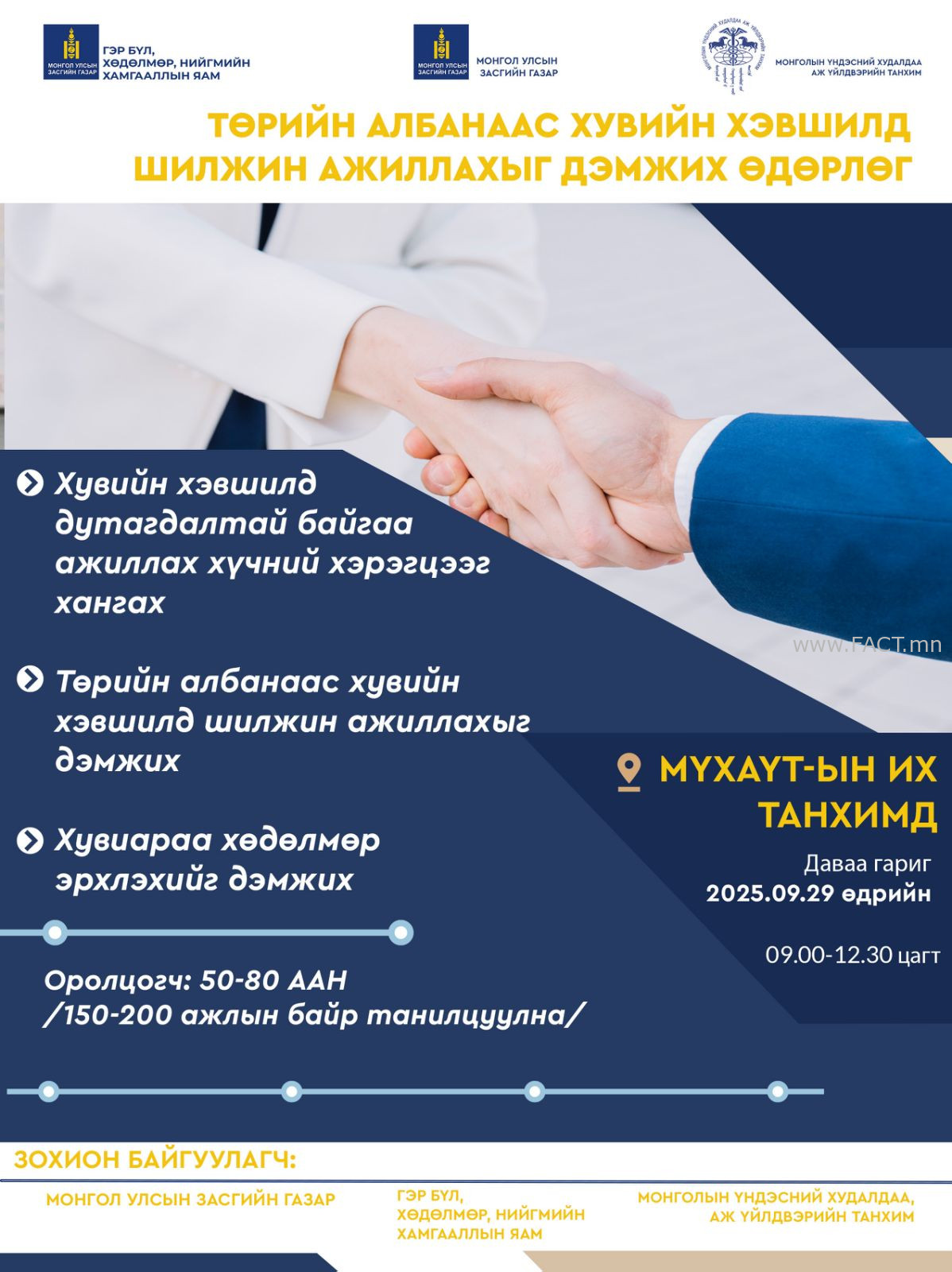 Төрийн албанаас хувийн хэвшилд шилжин ажиллахыг дэмжих өдөрлөг