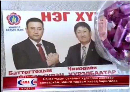 АН-ын ерөнхий нарийн бичгийн дарга Д.Эрдэнэбат Сонгуулийн ерөнхий хороонд ханджээ. Учир нь МАН-аас Увс аймгийн тойрогт нэр дэвшигч Б.Чойжилсүрэн Сонгуулийн тухай хуулийг удаа дараа зөрчөөд байгаа юм байна. Тэрээр өөрийн намын мөрийн хөтөлбөрт тусгагдаагүй, бэлэн мөнгөний амлалтыг увсынханд өгч эхэлжээ. Түүний амлалт нь сар бүр 21 мянган төгрөгийг дараа жилүүдэд үргэлжлүүлэн олгоно гэсэн утгатай аж. Энэ амлалт нь Сонгуулийн тухай хуулийн 34.2, 34.3 дахь заалтыг зөрчсөн ажээ. Тиймээс нэр дэвшигч Б.Чойжилсүрэнгийн нэрийг нэр дэвшигчдийн жагсаалтаас хасуулах хүсэлтийг АН-ынхан ийн гаргаад байгаа юм байна. Хэрэв СЕХ энэ асуудлыг хэлэлцэхгүй үлдээх, хэлэлцээд Б.Чойжилсүрэнгийн талд шийдвэрийг гаргавал МАН бэлэн мөнгөний амлалт өгсөн гэх хэрэгт унана. Улмаар Сонгуулийн тухай хуулийн 34.3 дахь заалтыг зөрчсөн үндэслэлээр намаараа сонгуульд оролцох эрхгүй болох юм. Энэ хэргийг Улсын ерөнхий прокурорын газраас шалгахаар болж байгаа юм байна.