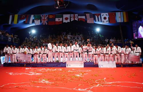 Аваргын төлөө ОХУ-Японы багийн хооронд болсон барилдаанд М.Эбинума Пуляевыг цэвэр, Я.Авано Кайтмозовыг юүкогоор хожин жүдогийн эх орны баг тэргүүлж эхэлсэн. Гэвч сүүлийн гурван барилдаанд Нагашима Мурат Хабачировт, олимпийн мөнгөн медальт Нишияма Магомедовт, Шичинохэ Александр Михайлинд дараалан дийлдсэнээр алтан медалиа алдаж орхив. Оросын баг дэлхийн аварга бол түүхэндэ нэгэн шинэ хуудсыг бичлээ. Одоогоор жүдо бөхийн эрэгтэйчүүдийн төрөлд маргаангүй хамгийн шилдэг нь тэд юм байна. Дэвжээний эзэн орон Бразил Японд ялагдсан ч хүрлийн төлөө урамтай барилдаж, дэлхийн шилдэг дөрвөн багийн нэг болсон юм. Нөгөө нэг хүрэл медалийг Гүржийн баг хүртжээ.