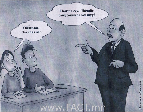 Гэвч манай эрх мэдэлтэн, өндөр дээд албан тушаалтнууд сонгон шалгаруулалт, тендер гээч зүйлийг ямар бохир аргаар хийдэг тухай чэн хүнгүй мэднэ. Тэгэхээр энэ гөлөвлөгөөний цаад агуулгыг маш годорхой харж болохоор байгаа юм. Өөрөөр хэлбэл, сонгон шалгаруулалт гэсэн шинэ нэртэй бас л бялуу хуваах үйл явц явагдаж байна. МУИС бол гарцаа байхгүй бялууны булан. Учир нь төрийн өмчит нэртэй боловч одоо сонгон шалгаруулалт нэрээр юу ч бөлж, хэн ч сонгогдож мэднэ. Гагцхүү өнгөрсөн хэдэн сарын гуршлагыг нь харахад АИ өөрийнхөө гишүүн багш нарыг дээш эүтгүүлж байгаа нь тодорхой. Гэтэл МУИС-ийн захирал бол нийтэд хүлээн чөвшөөрөгдсөн эрдэмтэн байх ёстой. Анагаах ухааны мэдлэг олгодог сургуульд ч мөн ялгаагүй. Тэр ч бүү хэл хамаг дэлхийн хамгийн хөгжил буурай орон ч хүртэл улсынхаа их сургуулийн захирлын тамгыг тийм л хүнд хариуцуулдаг. Харин энэ байдал манайд алга хөрвүүлсэн юм шиг эсрэгээрээ болох нь. Тиймдээ ч сургуулийн шал будаад, захирлыг нь ажлаас халчихсан л бол манай боловсролын тогтолцоонд үсрэнгүй шинэчлэл гэсэн үг. Гэтэл үүнээс цаана толгой эргэм олон асуудал бугшсан хэвээр байгааг тэд мэдсэн ч мэдээгүй мэт өнгөрдөг нь ёс мэт болон хувирчээ. Адаглаад л Өвөрмонголын зохиолч Аминбөхийн Одсэрийн “Алмасын дуу” нэртэй аль эртний хийгээд айхтар үзэл сурталжсан өгүүллэгийг бидний дүү нарт одоо хүртэл хүчээр тулгаж уншуулсаар байгаа гэвэл Та бараг итгэхгүй. Л.Гантөмөр сайд хэддүгээр ангийн ямар сурах бичиг дээр энэ огүүллэг байдгийг ч гадарлахгүй биз.