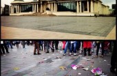 Харамсалтай нь Сүхбаатарын талбай өмнөх жилүүдээсээ ч илүү хогонд дарагдсан байсан юм. Сүхбаатарын талбай хогийн цэг болоод хувирчихав уу гэлтэй дүр зураг харагдаж байлаа. Ганц алхмын цаана байх